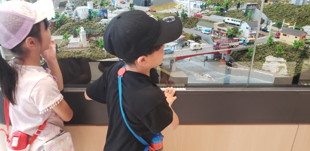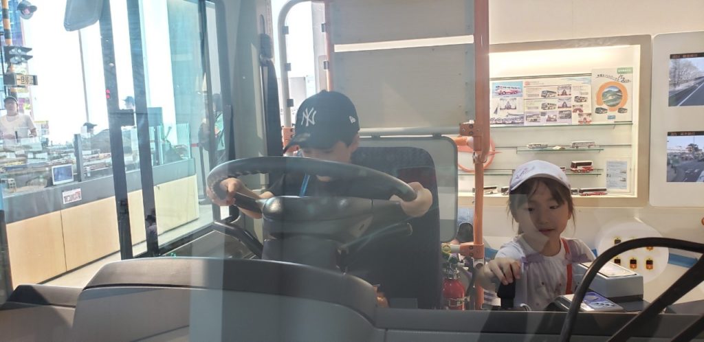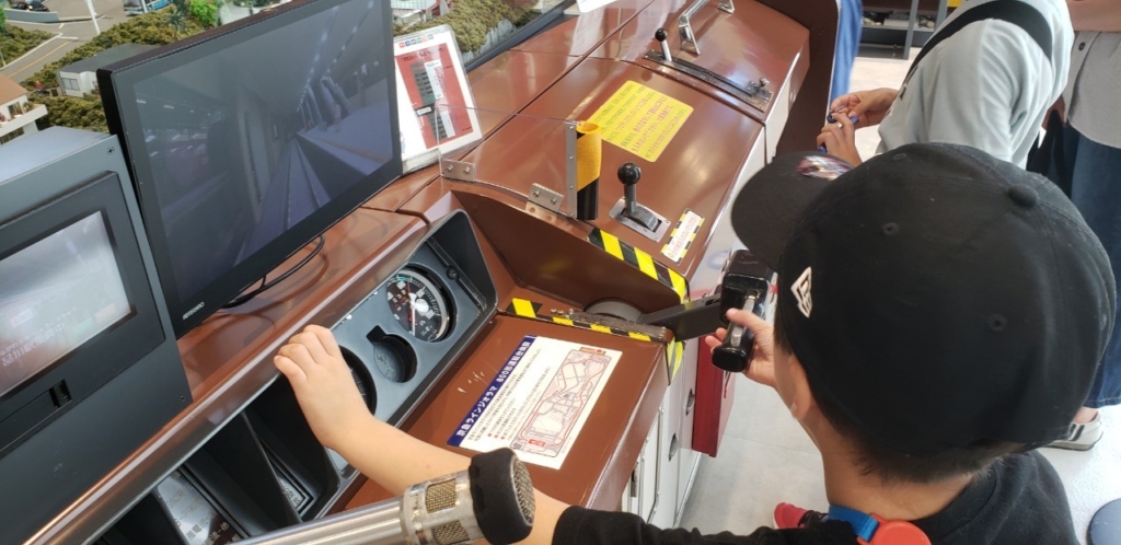 入場後は京急ラインジオラマを運転したりバスを再現したコーナーで運転席に座り運転者気分を味わったり、昭和初期の車両「デハ236号」に乗ったりドアの開閉体験をして楽しんでいました。